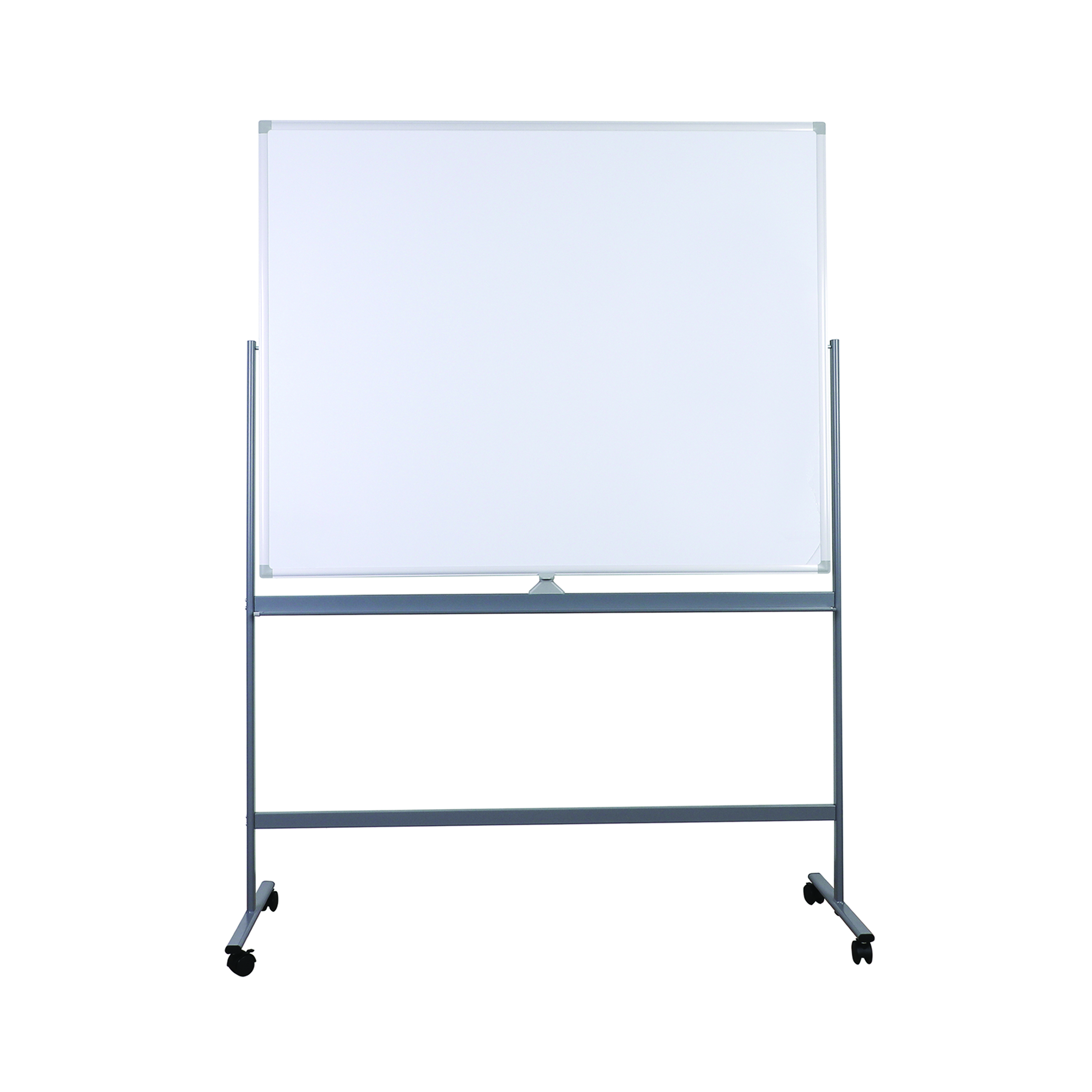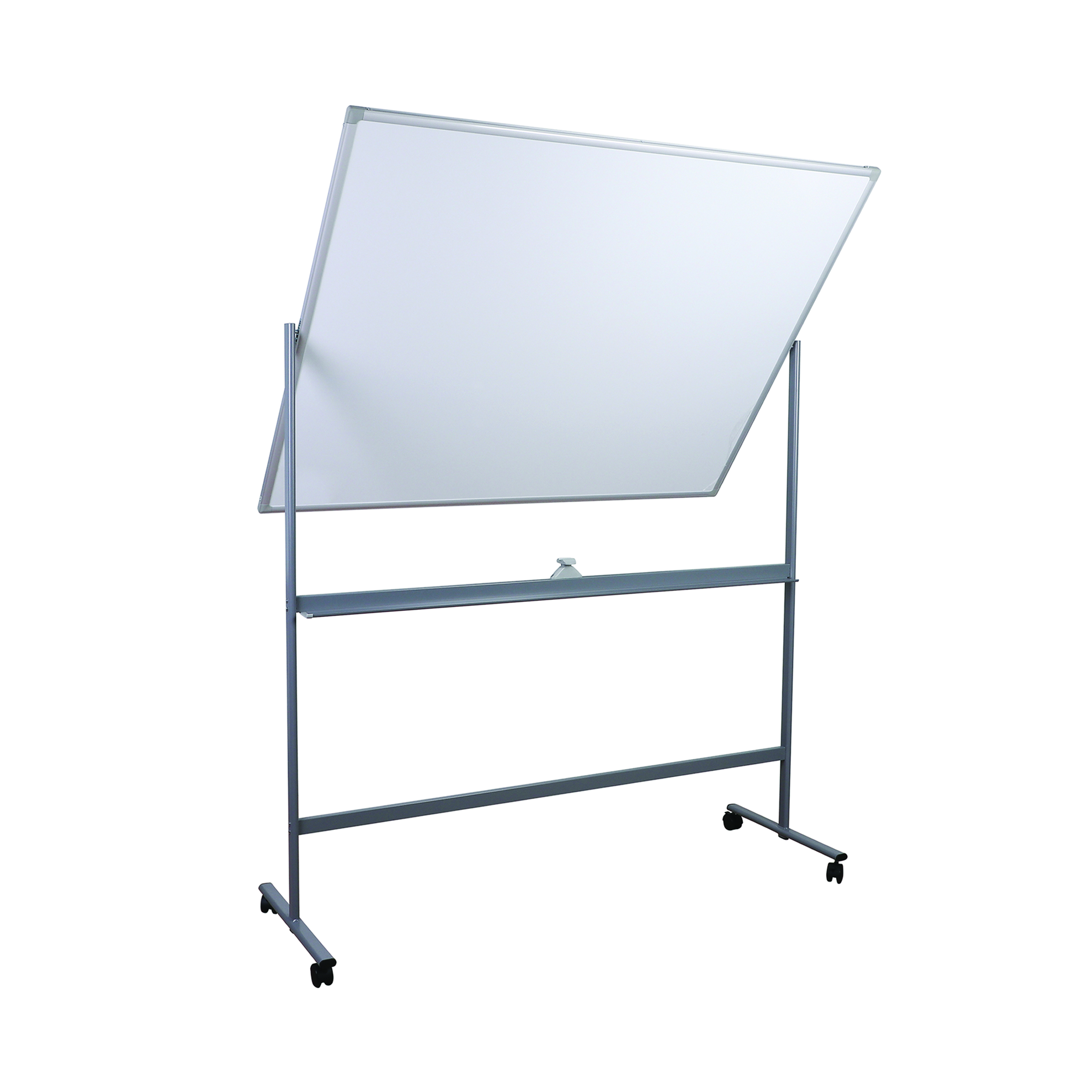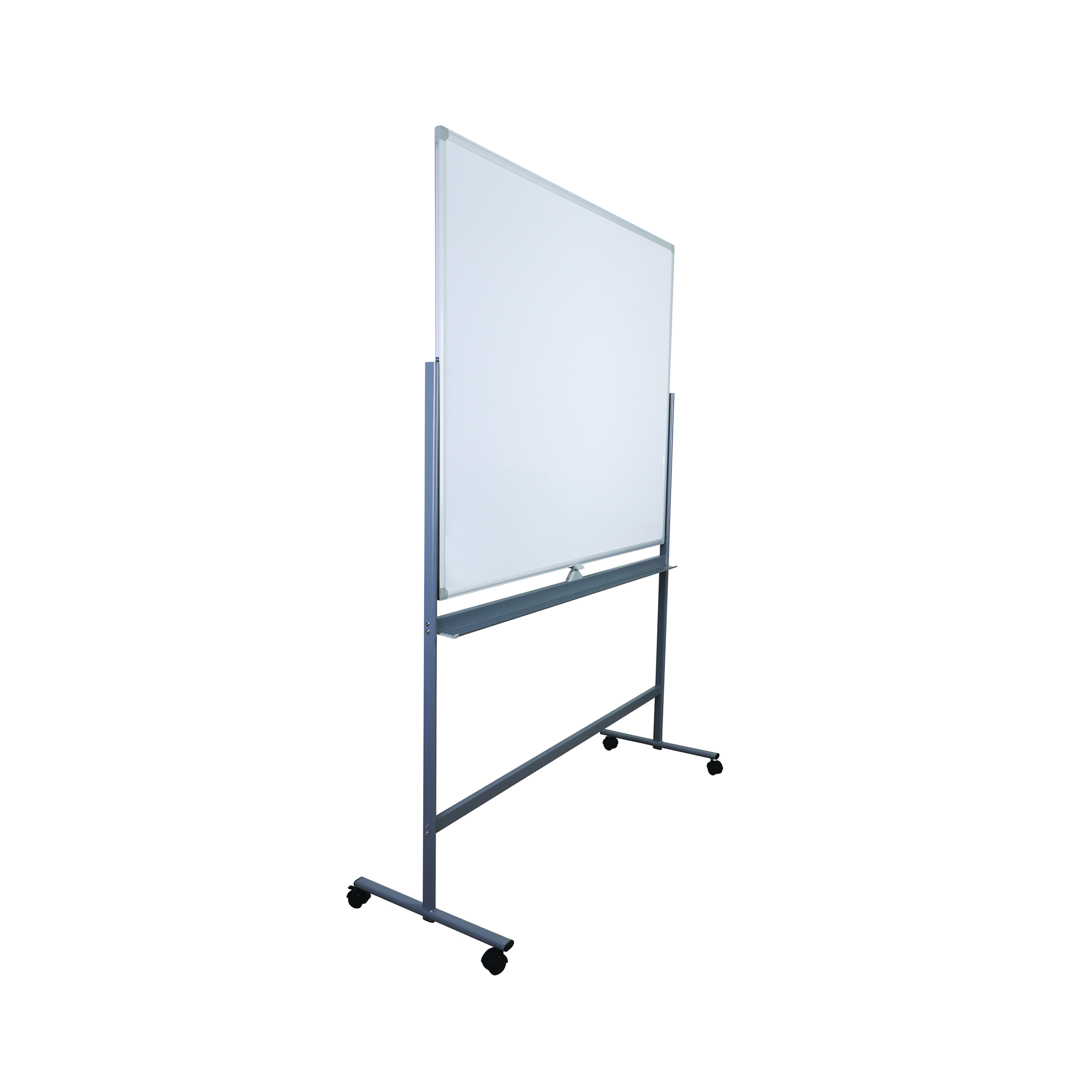 Double Sided, magnetic and mobile whiteboard makes it easier to move from place to place or to another room. You can turn and rotate the board so that it stands at the right angle in relation to the light and the people in the room. With a large workable space and pen shelf.